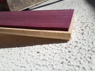 Legno di amarante da 5 mm. supportato da abete bistrato di 14 mm. da fresare previa incastri.